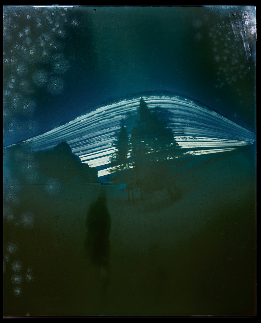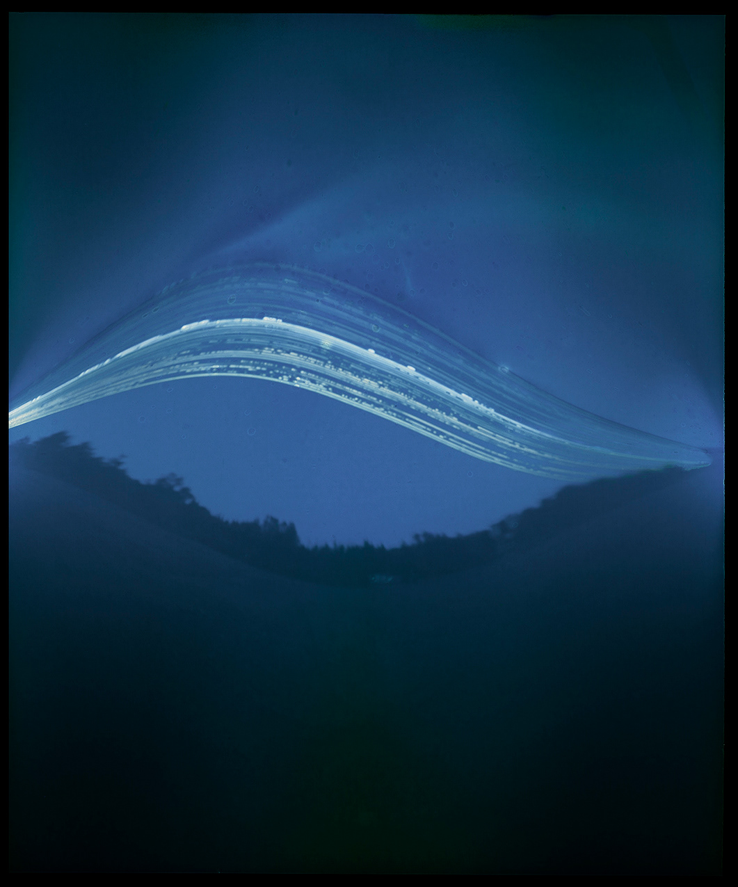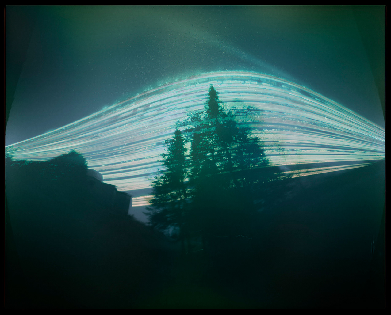 La technique de prise de vue utilisée dans ce projet, la solargraphie, relève du même procédé que la caméra obscura – sténopé. La particularité de la solargraphie réside dans le fait que l’image s’imprègne sur le papier photographique sur un très long temps d’exposition (on parle ici de semaines, de mois). Il s’agit d’une technique qui n’exige aucun développement; l’image est révélée en négatif directement sur le papier photographique à l’intérieur de la camera. Il ne reste alors qu’à le numériser afin de découvrir l’image obtenue. L’étape de la prise de vue s’est déroulée sur une période six mois (juillet 2022 à décembre 2022). L’objectif étant de capter les tracés du Soleil à partir de différents points de vue et à intervalles décalées, plusieurs appareils (sténopé) ont été fabriqués et installés sur les lieux. J’ai utilisé certaines caméras de façon individuelle, mais j’ai également fabriqué un panneau composé de plusieurs appareils, me permettant ainsi la captation multiple à intervalle décalée, à partir d’un point de vue similaire. L’utilisation de canettes d’aluminium comme boitier offre un angle de prise de vue très large permettant ainsi d’obtenir une image qui illustre bien l’effet recherché. Les images captées deviennent en quelque sorte, des cadrans graphiques illustrant, de manière poétique, les traces du passage du soleil. Ces appareils rudimentaires me soumettent à des impondérables, à des résultats hasardeux par lesquels émergent une imagerie qui renvoie inévitablement à la dégradation du paysage, de la nature. Tout au long du processus de captation des images, j’ai réalisé une documentation visuelle (photo et vidéo). Ces documents témoignent de l’avancement du projet, du temps qui s’écoule, et des réflexions - explorations s’y rattachant.