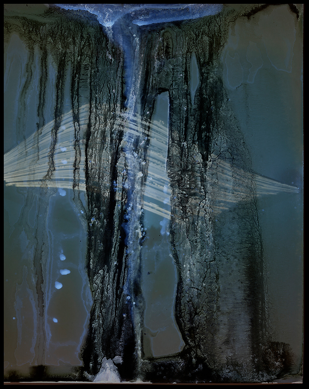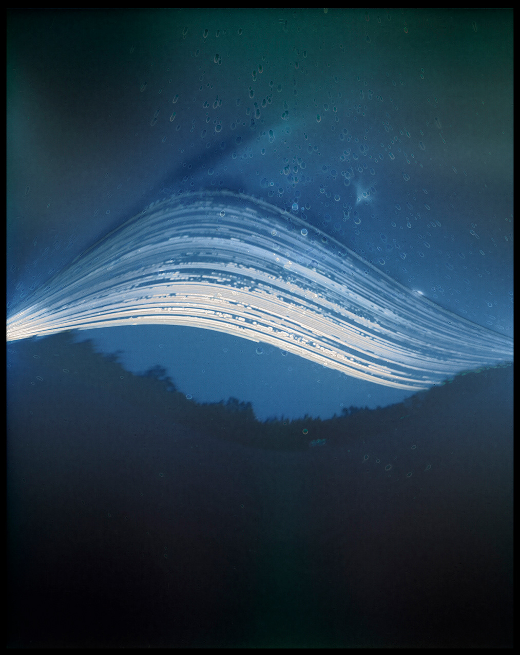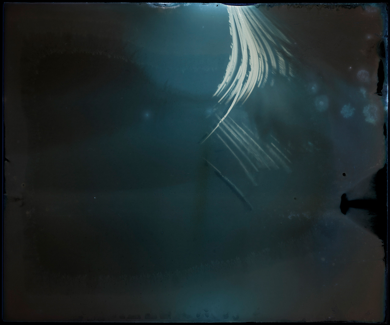 La technique de prise de vue utilisée dans ce projet, la solargraphie, relève du même procédé que la caméra obscura – sténopé. La particularité de la solargraphie réside dans le fait que l’image s’imprègne sur le papier photographique sur un très long temps d’exposition (on parle ici de semaines, de mois). Il s’agit d’une technique qui n’exige aucun développement; l’image est révélée en négatif directement sur le papier photographique à l’intérieur de la camera. Il ne reste alors qu’à le numériser afin de découvrir l’image obtenue. L’étape de la prise de vue s’est déroulée sur une période six mois (juillet 2022 à décembre 2022). L’objectif étant de capter les tracés du Soleil à partir de différents points de vue et à intervalles décalées, plusieurs appareils (sténopé) ont été fabriqués et installés sur les lieux. J’ai utilisé certaines caméras de façon individuelle, mais j’ai également fabriqué un panneau composé de plusieurs appareils, me permettant ainsi la captation multiple à intervalle décalée, à partir d’un point de vue similaire. L’utilisation de canettes d’aluminium comme boitier offre un angle de prise de vue très large permettant ainsi d’obtenir une image qui illustre bien l’effet recherché. Les images captées deviennent en quelque sorte, des cadrans graphiques illustrant, de manière poétique, les traces du passage du soleil. Ces appareils rudimentaires me soumettent à des impondérables, à des résultats hasardeux par lesquels émergent une imagerie qui renvoie inévitablement à la dégradation du paysage, de la nature. Tout au long du processus de captation des images, j’ai réalisé une documentation visuelle (photo et vidéo). Ces documents témoignent de l’avancement du projet, du temps qui s’écoule, et des réflexions - explorations s’y rattachant.